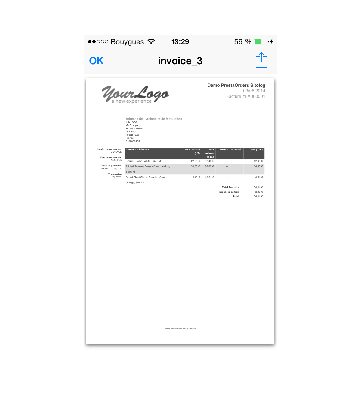 PrestaOrders est l'outil de gestion mobile idéal, pour gérer vos commandes, vos paniers et clients lors de vos déplacements, sur votre mobile ou tablette.