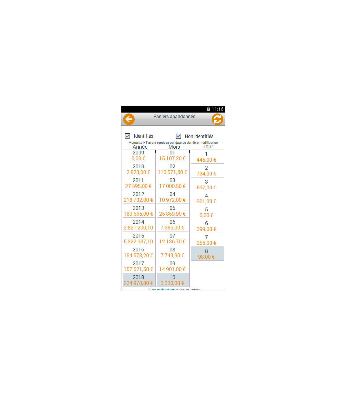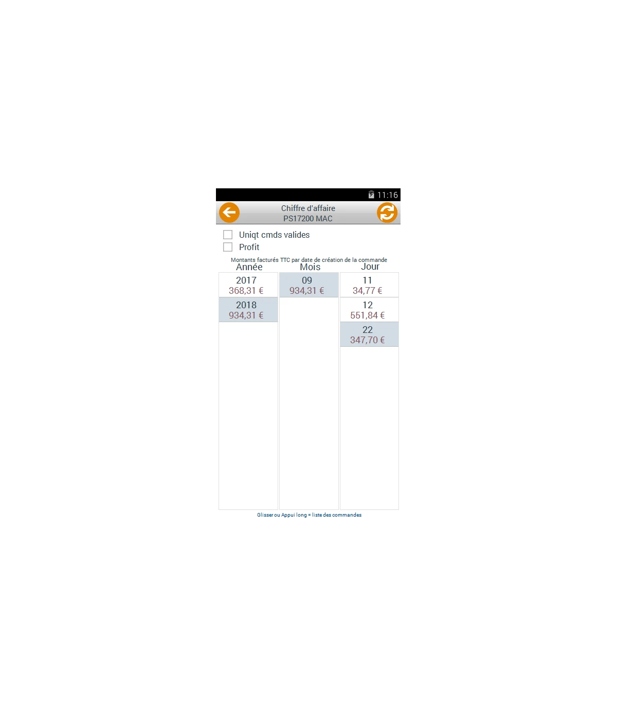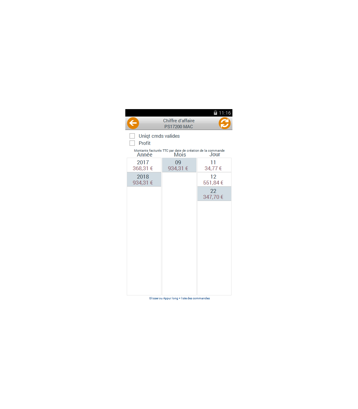 - Affichage du chiffre d'affaire, par année, par mois, par jour.