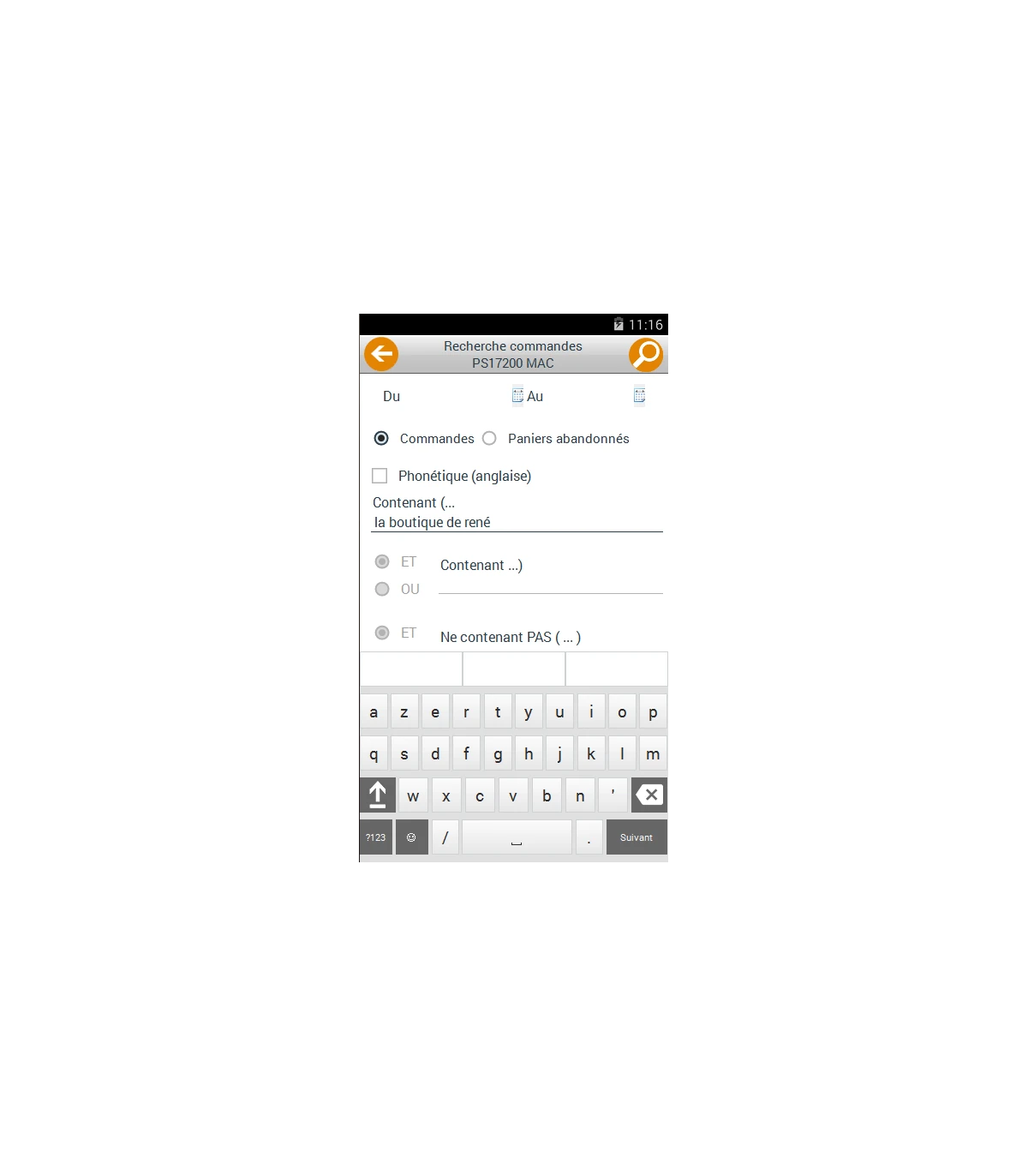 - Outil de recherche des commandes exhaustif, par mots clé sur n'importe quel champ, par date, statuts, conditions combinées, etc...