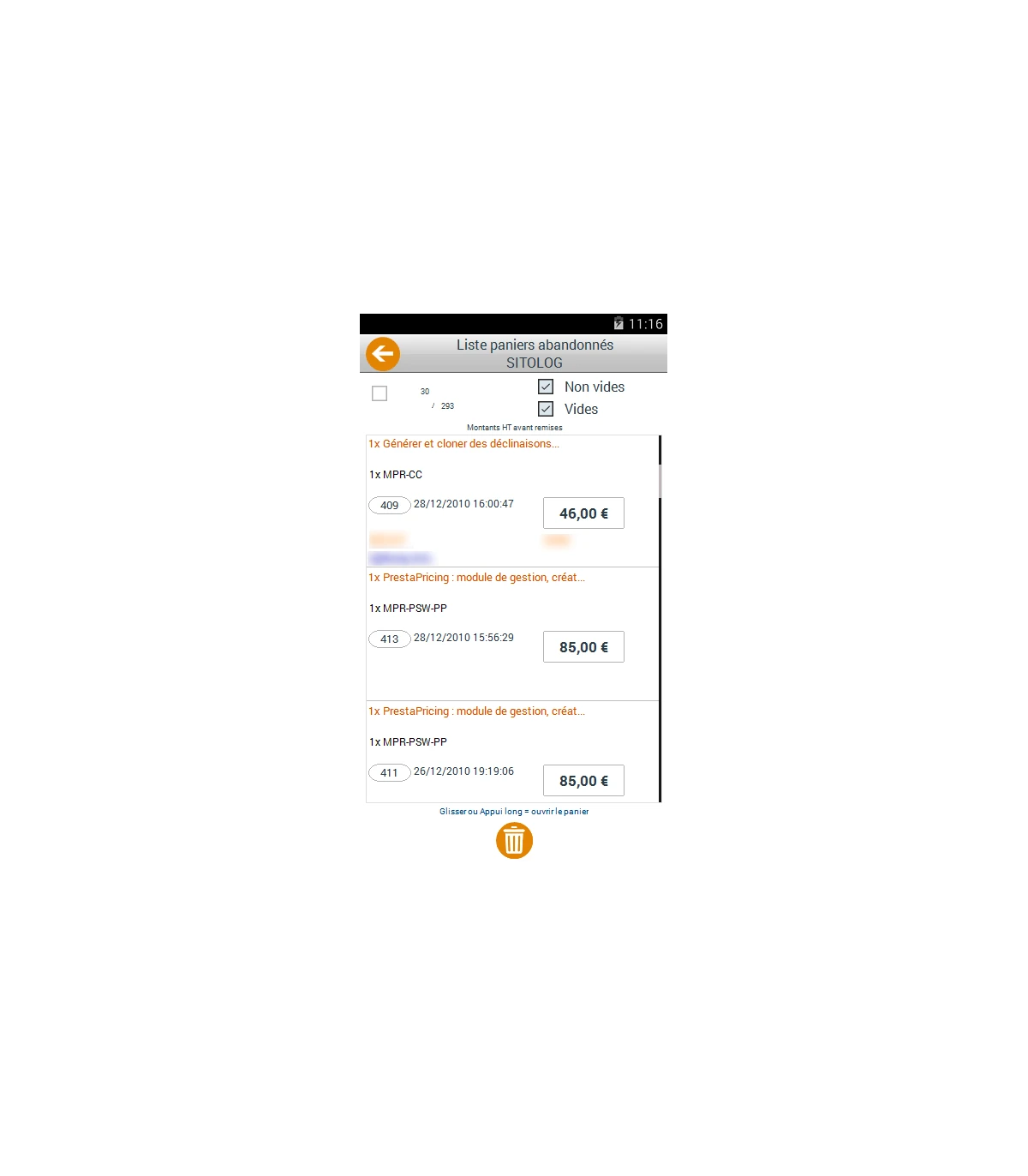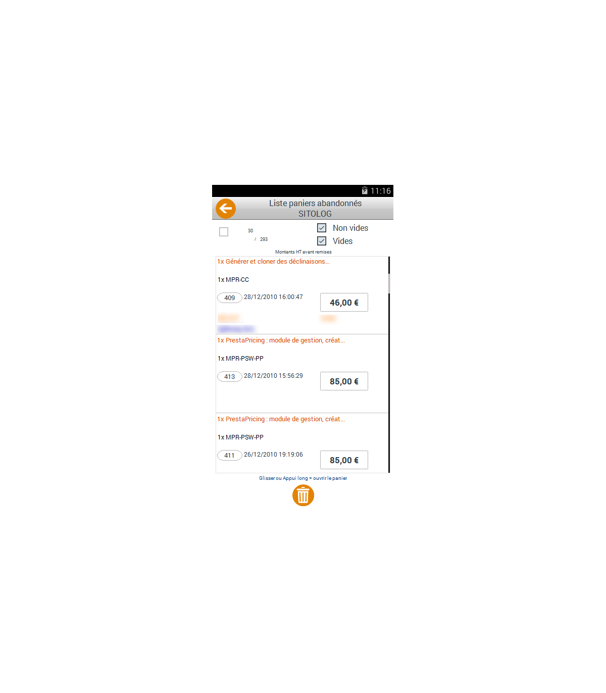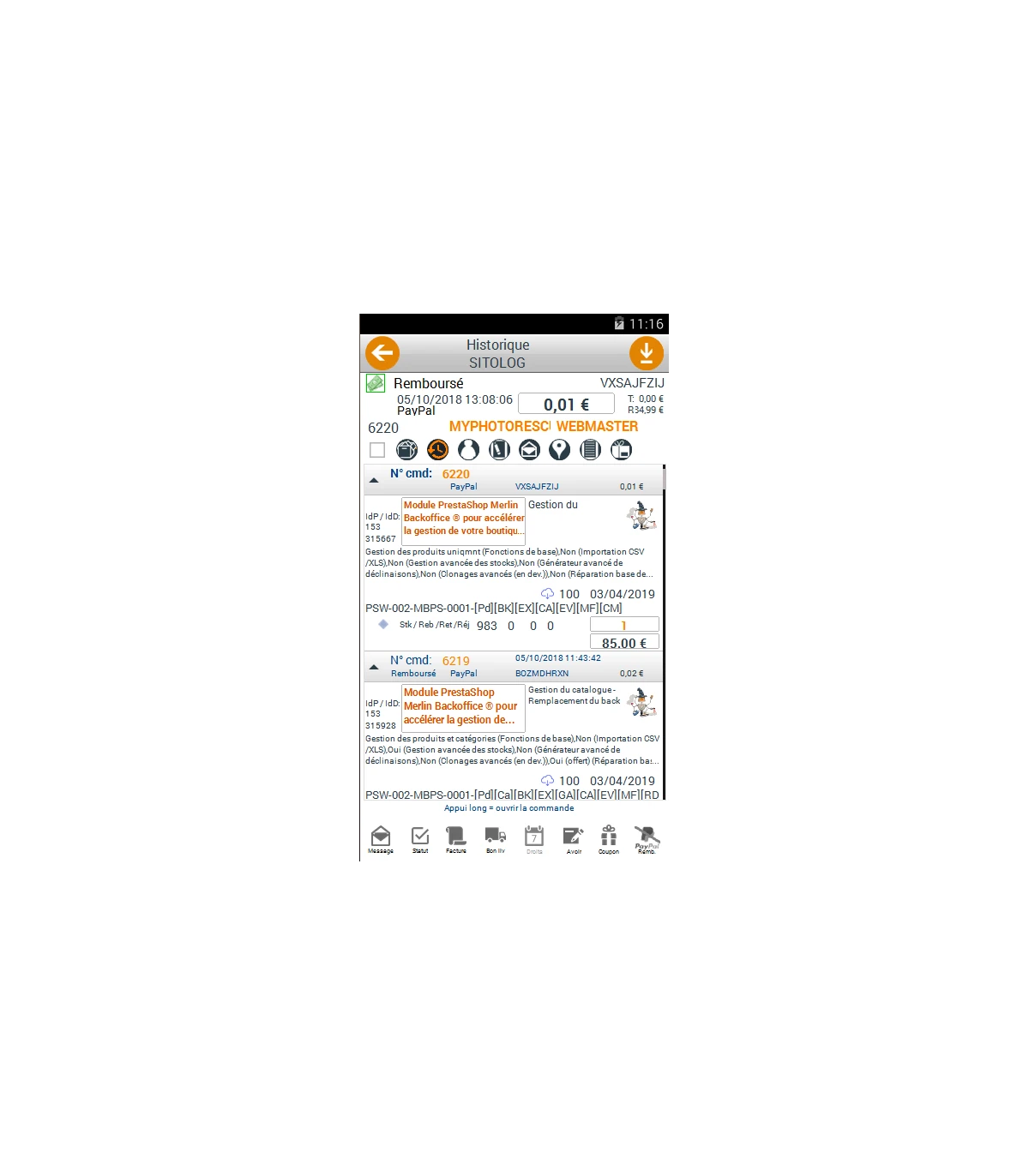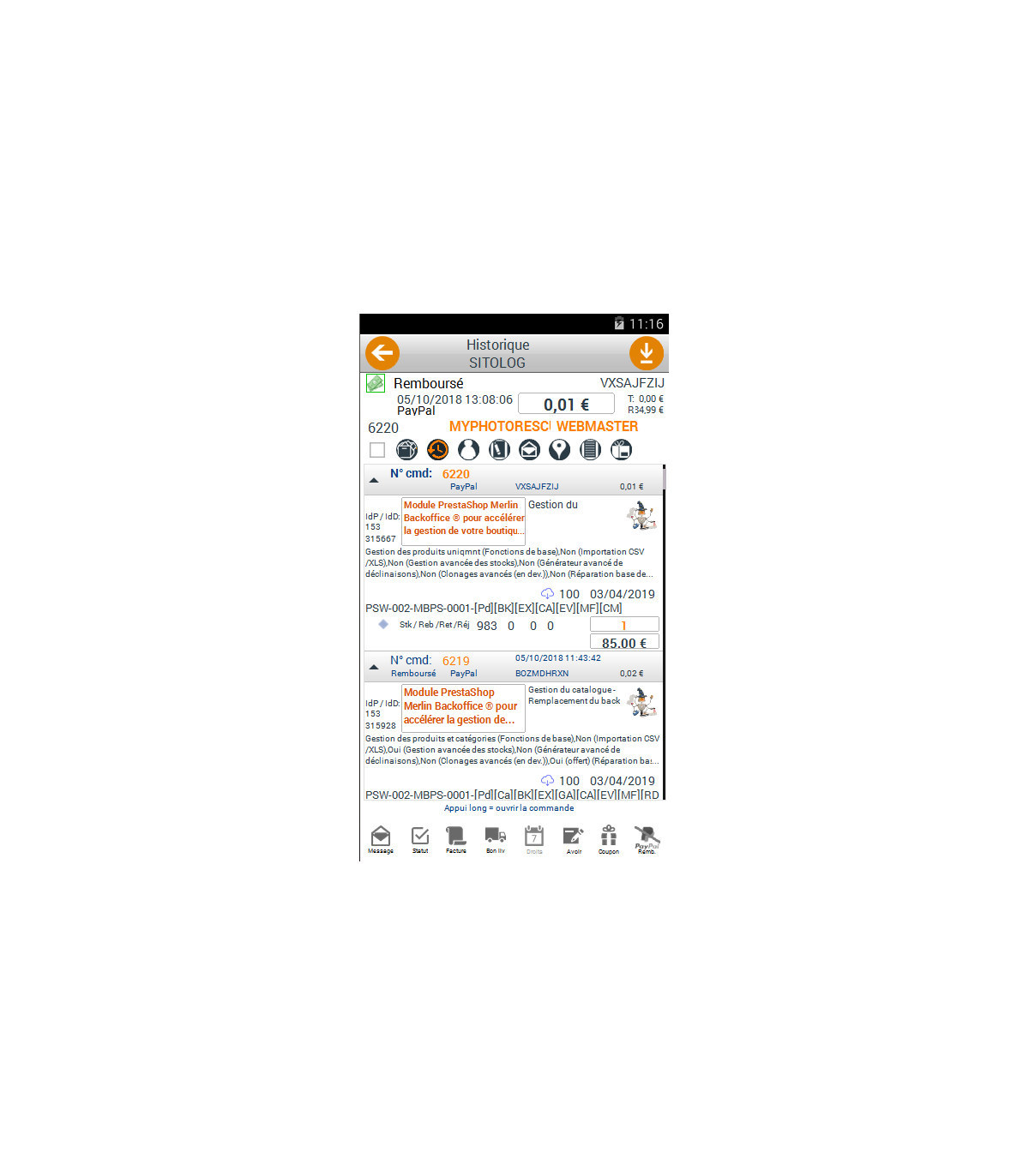 PrestaOrders comble donc ce besoin, offrant au gestionnaire mobile, diverses vues de son activité et divers outils d'administration.